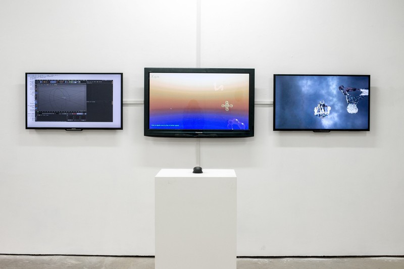 “A triptych is a painting that’s done in three parts,” Makumbe tells me. “I come from a design background, so my work is usually very digital. One of the works in this an interactive experience, and the other two are moving image digital works.