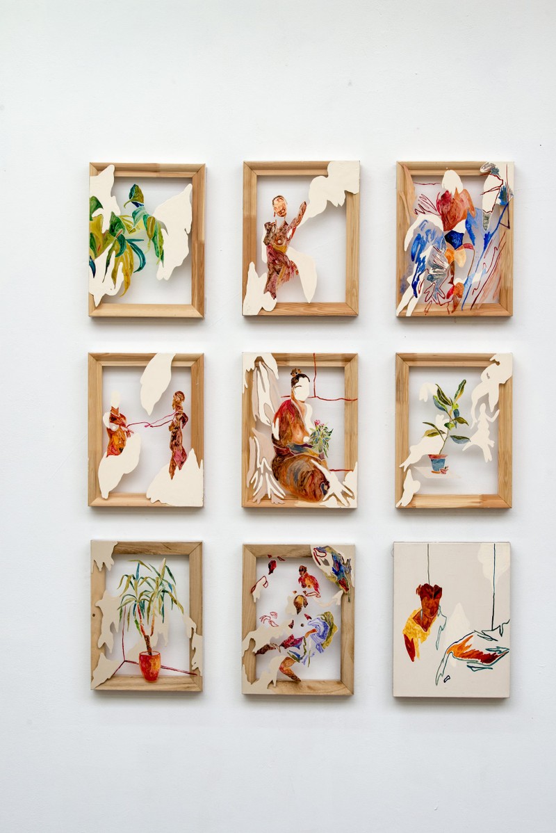 “[My installation features] work from two series. One is Our Naked Truths, a series of paintings from life drawing sessions held as art therapy for women of colour by a Camden collective. The model, always a woman of colour, would talk about their self-acceptance journey and relationship with their body, so it would be more intimate than mainstream life drawing class. And the other series is called Closed Doors, exploring queer couples and relationships in interior spaces and domestic settings. Going outside and accessing certain public spaces might come with a certain level of fear when you’re visibly queer, but when you’re in your own home, its sacred space and that makes it more intimate.”