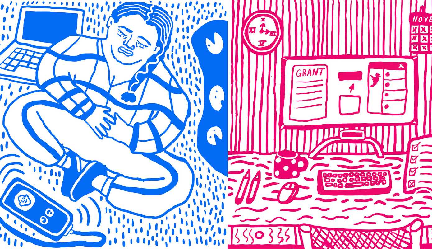 In this illustrated conversation, recorded in August 2020, Sasha and Nick discuss navigating the creative and social sciences sectors in the North East as Black, disabled, neurodivergent, and chronically ill workers. They talk about managing work, financial (in)security, the role of unions, and self-care in a pre- and post-pandemic landscape.