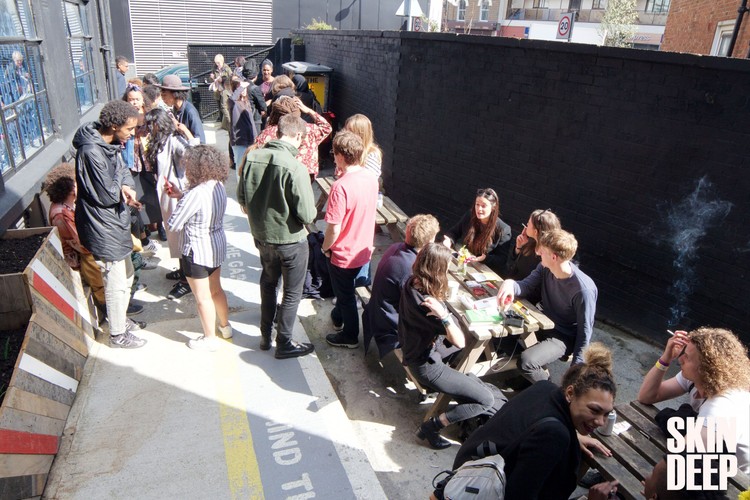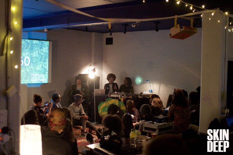 On the 17th of April, a sunny Sunday, Skin Deep welcomed six cutting-edge counterculture collectives of colour to Platform in Southwark, London. They had 60 minutes each to use the space however they chose, showcasing what they do and sparking much-needed conversations about race, culture and identity, from past to future, outside the classroom and offline. At the beginning of the second session of the day, a member of Decolonising Our Minds Society from SOAS University asked the audience: “What learning/formative experiences have you had outside of the classroom?” People shared stories about learning from their mothers and fathers to cook Zimbabwean dishes, facing the challenge of finding ingredients in a country where they either didn’t exist or couldn’t survive the wet and damp climate. One person shared a story of a bar fight, another about a house party, making the audience think broadly and deeply outside of conventional methods of learning. At the front of the room we had created a low stage, about 6 inches off the ground, out of wooden pallets, which we covered with red, brown, orange and green carpets to make sure no one slipped through the cracks. Most of the collectives asked just before they started their session: “We know it will be slightly harder to see us, but can we sit on the stage rather than stand?” Sitting down put those facilitating the discussion at a lower level than most of the audience, so before the conversations even got started, the audience were forced to acknowledge the way in which – both within and outside of institutional spaces – we separate those who possess knowledge and those who seek it. These hierarchies are reflected in who speaks and who listens, who is at the front, who is standing and who is sitting. From their place on the floor, by allowing the whole room to navigate these questions with personal storytelling and exchange, the collectives didn’t just talk about dismantling hierarchies of knowledge – they were putting their methods into practice. Next the audience was asked: “What are our strategies for disrupting these hierarchies of knowledge?” One person told a story about a podcast they had listened to on RadioLab: “Two queer black students go into a debate and they are supposed to talk about energy, but they force a debate on race every single time, regardless of the topic. They say “the energy that it takes me to get up in the morning is more important than the energy of fossil fuels, so we are going to talk about that. And that’s the strategy I’ve been using in my classroom and in my writing. Using the form you are given to say “Look at this.” You learn far more from creating spaces like this and from forcing these kinds of conversations.” One of the reasons Skin Deep chose to create an event like the 6×60 is that we wanted people to be in a space where they felt that they could ask questions like: why is there a disjuncture between knowledge cultivated inside and outside the classroom? And: how can we share our non-traditional forms of knowledge production? In bringing collectives that work on race and culture together, the hope is that they will link up, showcase work, share methods, get feedback, pool resources and create. Or at the very least, as Decolonising Our Minds challenged us to do, consider what it means for us, as counterculture collectives, to work with/in institutions and whether that makes us complicit in upholding the system. Something worth considering is that the majority of the work that we, and collectives like us do, is free. We have little to no funding, yet we are continually working hard to innovate, to find new ways to produce dope work and get it out to a worldwide audience – all whilst keeping it fresh, accessible, not compromising on our values, and prioritising the lives, narratives and aesthetics of people of colour. And that is damn hard work. So meeting and working with other collectives provides a motivational boost for us to continue to do the work we’re doing. Of course, working this way is made that much easier if we are able to share accessible and free spaces, such as Platform Southwark, where we can host events like 6×60. These concerns are obviously not unique to our situation; they were experienced by the generations that created, agitated and collaborated before us. In their session on Generations in Dub: Intergenerational thinking through the sound of Jamaican music, the Stuart Hall Foundation played tracks on Al Fingers’ 80s sound system as a way to expose younger generations to music from generations past.