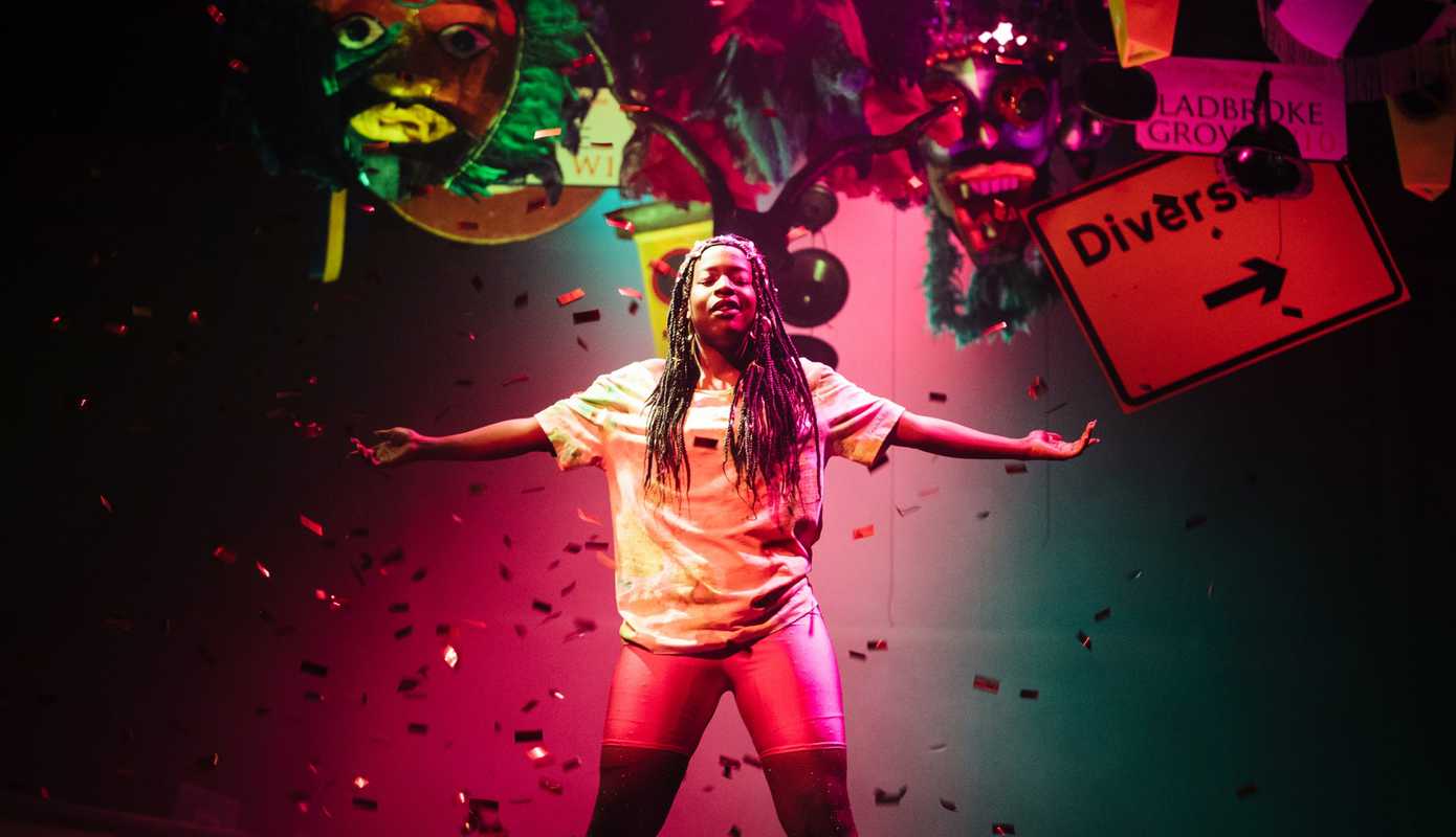 The play follows Nadine at Notting Hill Carnival, on a mission to win “Face of the Fete” for an all-expenses-paid trip to St Lucia. “I’d take you with me,” she says to her best friend Jade, whose journey through Carnival shows her discovering her political voice. At its center, J’Ouvert is a story of friendship and, in many ways, an examination of what it means to be cared for and held. When I ask Yasmin about the making of the show, it’s clear these are considerations she makes offstage as well. Most of Yasmin’s plays thus far have been directed by Rebekah Murrell; “we’ve got an established way of working with each other,” she tells me, emphasising that finding the right collaborators can affect the creative potential of a show.