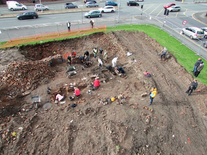 Standing on the site of The Reno today, a little patch of grass with a foot-high wooden fence that cordons it off from a footpath, it’s hard to imagine what once was. The row of shops that sat next to the club are all but gone; as is the reggae club, The Nile, which was upstairs. The only remnants are crumbling buildings and a scrap yard across the road. On this patch of grass – flanked by the Heineken brewery’s chimneys and Princess Parkway, which hums with traffic coming in and out of the city centre – Brogan, and dozens of former regulars, gathered to help with the dig in 2017. With assistance from the archaeology team at Salford University, the survivors burrowed into the dirt and found the club’s foundations.