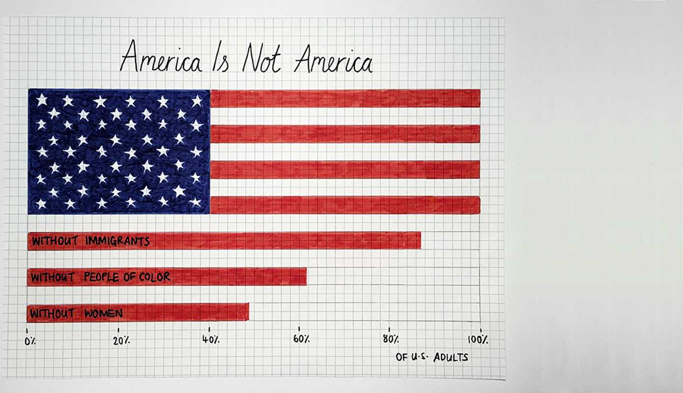I do think that [statistics] can be more powerful than rhetoric. For example, an illustration I am working on this week is on the new travel ban. The rhetoric around that is that these countries pose a threat to US national security, but the statistics and data directly contradict that. You can pull up data that shows how many nationals from these countries have killed US citizens. You know, the data I’m looking at is from 1975 – 2015, [which amounts to] forty years worth of data. If there have been zero murders by nationals from these countries [on US soil], and you are still saying that this is a national security issue then…Hopefully, [the statistics] are doing something that challenges the rhetoric a bit.