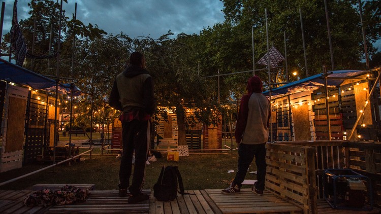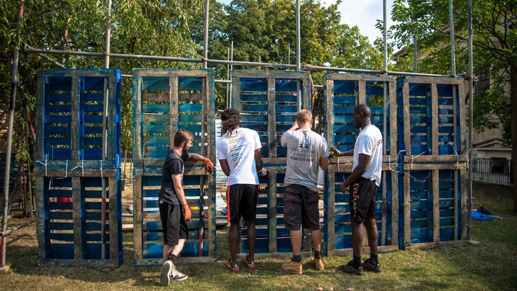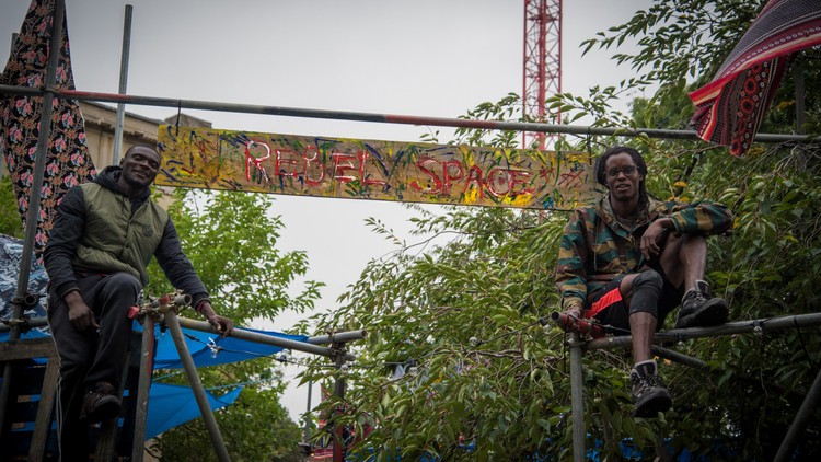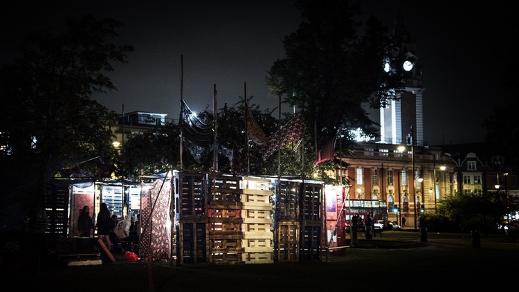 Skin Deep: Why did you decide to build the Rebel Pavilion in Brixton? Akil Scafe-Smith: We had just finished uni, and [Gam and I] were looking for some way of collaborating. We knew the Brixton Design Trail was happening, and we thought it would be a good opportunity. I live down the road and have a long family history in Brixton, which was another plus. Gameli Ladzekpo: Akil and I had been talking about informal versus formal structures, and about the different cultures and ethnicities that are found in Brixton – Caribbeans, Ghanaians, etc. When building structures in the different parts of the world that these communities came from, they use whatever local materials they can find. We wanted to borrow that same methodology from those cultures to build this structure, using whatever materials we could find around Brixton. We called it the Rebel Pavilion because we wanted it to be a place where people can come and talk about ‘extreme’ ideas. We’ve invited thought-leaders to talk about their most rebellious ideas. The space you’re in affects how you feel and what you feel comfortable sharing. If you have a space like this, you might get real open conversation, which is both creative and radical. We want the space to be constructive for the community, both physically and mentally. ASS: We want people to re-think and re-solve, to reconsider their preconceptions. GL: The Rebel Pavilion is an evolving space where every person has a different experience. SD: What are the materials that you’ve used? ASS: We sourced pallets from the immediate area, from the market, Tesco, builders yards, and the scaffolding has been loaned to us by a guy called Lee – shout out to Lee Scaffolding – who came through for us. It reflects our level of experience. We couldn’t build the Millennium Dome, you know. But this is a testament to the whole methodology behind scarcity architecture. You have to build and innovate using what’s available to you. GL: In London, housing structures are so formal. The height of rebellion would be to do the absolute antithesis of that: to create something informal. ASS: The first idea Gam had for the space was to build a shack in the middle of Brixton, like the vendors you get on the side of the road in Jamaica. It would be a very informal space in the middle of a very formal city. From the outside, approaching the shack, you would have an unfamiliar experience and you wouldn’t be exactly sure of what to make of it. And then as you enter it, it would become something more familiar – an art exhibition or a talk. I think we’ve managed to create that transitional feeling in the Rebel Pavilion – a sort of liminal space. SD: Our use of public space typically conforms to a normative idea of social time. Public spaces close and open to accommodate the person with the 9.00 am – 5.00 pm job. The Rebel Pavilion, true to its name, has chosen to operate both within and outside of normative social time – the space will be open for 24 hours for 7 days – making it accessible to shift workers, insomniacs and anyone that might need a place to sleep. What was the thinking behind having the pavilion be accessible 24/7? ASS: There were 2 reasons behind this thinking. You have to pay an arm and a leg just to sit down somewhere nowadays. For instance, Gam just had to buy a coffee to sit in Starbucks to get wifi. You have to kill your firstborn son to get a free meal around here. People need a place that’s just cool, where they can sit and chill. GL: The space isn’t fully open or closed. ASS: The panels are closed to protect the pavilion from the weather, but they can all twist to open out. SD: Which allows you to wander in and through the pavilion. ASS: Yes! It’s about permeability! GL: But it’s not as simple as calling it ‘open’ or ‘closed.’ It’s about degrees of openness. ASS: Another reason behind the 24/7 thinking is the location – St Matthew’s Church Gardens is notorious for its homeless population. There are no gates to this park, so my man can come sit and do his thing at any time. This park will seem closed off to many people because most won’t think of it as a public space. They don’t want to be in this park. In the same way, the Champagne and Oyster bar in Pop Brixton doesn’t seem like a place for people from this park. There would be nothing we could really do to stop people getting into the pavilion. So we had to embrace it. We had no intention of trying to close it off. SD: You’ve managed to disrupt a space in a way that doesn’t disrupt it for those from the local community that use this space on the regular. GL: Yeah, exactly. SD: The talks at the pavilion on Tuesday were titled ‘Refuge, The Subaltern & Urban Space’, the aim of which was to explore the role that ‘subalterns’ have in redefining urban space and how they in turn are impacted by the spaces themselves. Whom are you defining as ‘subaltern’ and what are you hoping to achieve by having these conversations about the role of these groups in urban planning? ASS: I know subaltern has postcolonial connotations, but we’ve taken it to mean ‘the marginalised’ in this context. We wanted all the talks to be as open as possible. On Monday the talks were titled ‘Diaspora & the Return.’ People responded to this with their own ideas of diaspora and the return. GL: When we were thinking about how the Rebel Pavilion was going to be used, we wanted it to be a space where ‘no ideas are barred.’ It looks like a den. You imagine a couple of mates trying to build a nation. This may sound really corny, but you come into this space and you’re under the tarpaulin, you can hear the rain and see the lights, with people huddled round a stall. It feels like a ‘rebel space.’ ASS: You’re huddled round listening to poetry or to people talking about their experiences in the 60s in Brixton. GL: The ‘rebel space’ is a physical thing, but it’s also a mental space. 