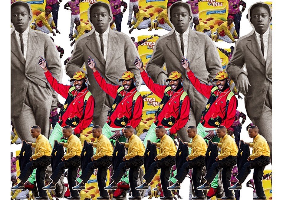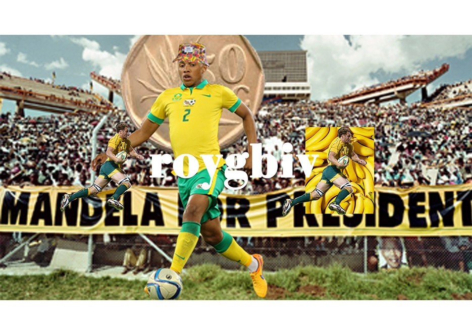 SD: Why did you choose this particular medium – a multimedia visual series – to interrogate notions such as the politics of blackness, colonialism, capitalism, sports, health in black communities, varying forms of masc(k)ulinity, white supremacy, land reform and redistribution? Is there a link to be made between the fragmentation of the medium and the notions you are challenging? TM: Over the last 3 or 4 years, I’ve been experimenting with different mediums. This has ranged from writing (poetry and journalism) photography, videography, digital collage and fooling around with sound design software. I then pulled all these interests together to produce the project. I had been experimenting with collage murals on Instagram and had begun thinking of how I could present these in video form. What I have really enjoyed with collage was how it allows you to use all these pre-existing elements – each with their own meanings, connotations, and ways in which they are coded/decoded – and reconfigure them to produce something new (that can still have the same contextual narrative, or not.) Prior to producing the collage I had done research on the issues that I interrogate in the series, and had been really interested in the concept of decollage and how it links to post-apartheid South Africa – where apartheid and neocolonial architects have created the Rainbow Nation by cutting, tearing away or removing, pieces of an original image. And here the original image could relate to Africa before colonialism, or before the migrant labour system, or before forced removals. The original image is any site (literal/metaphorical/imagined) that exists, or strives to exist, outside of white supremacy’s gaze. I wanted to reflect on how South Africa today is the result of people’s histories, identities, cultures and trajectories having been cut/removed/torn apart/disrupted. What I think is also tricky about collage is the risk of perpetuating the violence of stereotypes through imagery. Being black, queer, trans and young means that I have to be aware of how images can and have been used to oppress people and I should not run the risk of repeating these same kinds of colonial narratives. SD: You use what one might call ‘screens’ or visual planes that are clearly distinct from each other. This complicates the depth of the videos as it draws attention to the surface of the work, but also gives the impression that there’s something underneath or behind, an element we can’t see. These blind spots are fascinating, and raise the question of what necessarily gets hidden in collage. Do you think about the significance, formal or otherwise, of what gets blocked out? TM: Colonialism has disrupted so many narratives that it has complicated the ways in which in which we can imagine ourselves. I was drawn to the ideas of multiplicity, multiscreens and double consciousness when creating these various planes. The idea was to imitate the experience of having an identity that is on the margins, or in a liminal spaces, and the kinds of tensions that this experience can bring about. I was interested in the idea of double consciousness being a burden and a blessing, an exhausting experience that still pushes you towards unlearning, reimaging, and thinking outside of yourself. The use of blind spots was a deliberate one – the project is not meant to be watched once. And I think this goes against the norm on the internet where things go viral and then we forget about it. The objective is for people to watch it as many times as possible, over different points in time, having become and created different parts of ourselves. History as we know it is very calculated, so is the representation of marginalized identities, or the archive of what exactly happened for us to inherit post-apartheid South Africa. And so even when putting this series together, I was aware of what I was hiding/blocking/leaving out. What I am expecting is that everybody who watches the series will have a different, subjective way of uncovering what has been hidden. SD: Masc(k)ulinity is a predominant theme in work, as is sports. The Springboks and Bafana Bafana in particular have a very obvious presence in roygbiv. The connection between sports and masc(k)ulinity is a fairly obvious one to make, but it feels like your work is saying a lot more than that. Do you see your work as a commentary on the interplay between national sports, and by extension national pride, and masc(k)ulinity? TM: Since long before South Africa won the 1995 Rugby World Cup, or when we hosted the 2010 FIFA World Cup, sports have been used as an integral part of the nation-building project and have been used to “unite” the country. The link between masculinity and sports is apparent, but I wanted to look at how they also link to race, gender and capitalism. For example, in the context of post-apartheid South Africa, rugby is still a predominantly white sport and soccer is a predominantly black sport. Men’s soccer still garners more (capital/social/structural) support than women’s soccer. I think all of this links strongly to a post-apartheid state that continues to promote heteronormativity, has a suspicion of femininity, and a reliance on white monopoly capital in order to exist. SD: roygbiv features a photo series by photographer Jim Naughten, who dressed the Herero people of Namibia in Victorian clothing and photographed them in the desert. The series, called ‘Conflict and Costume,’ is in many ways a commentary on performance and coloniality. The decision to photograph the Herero people in particular is quite a political choice. In his book ‘Good Muslim, Bad Muslim’, Mamdani argues that the Herero people were actually the original victims of the first genocide of the 20th century, not the Jews; the Germans practiced the tactics that they would later use on the Jews on the Herero people during the Namaqua Genocide. All of this is to say, your work goes be