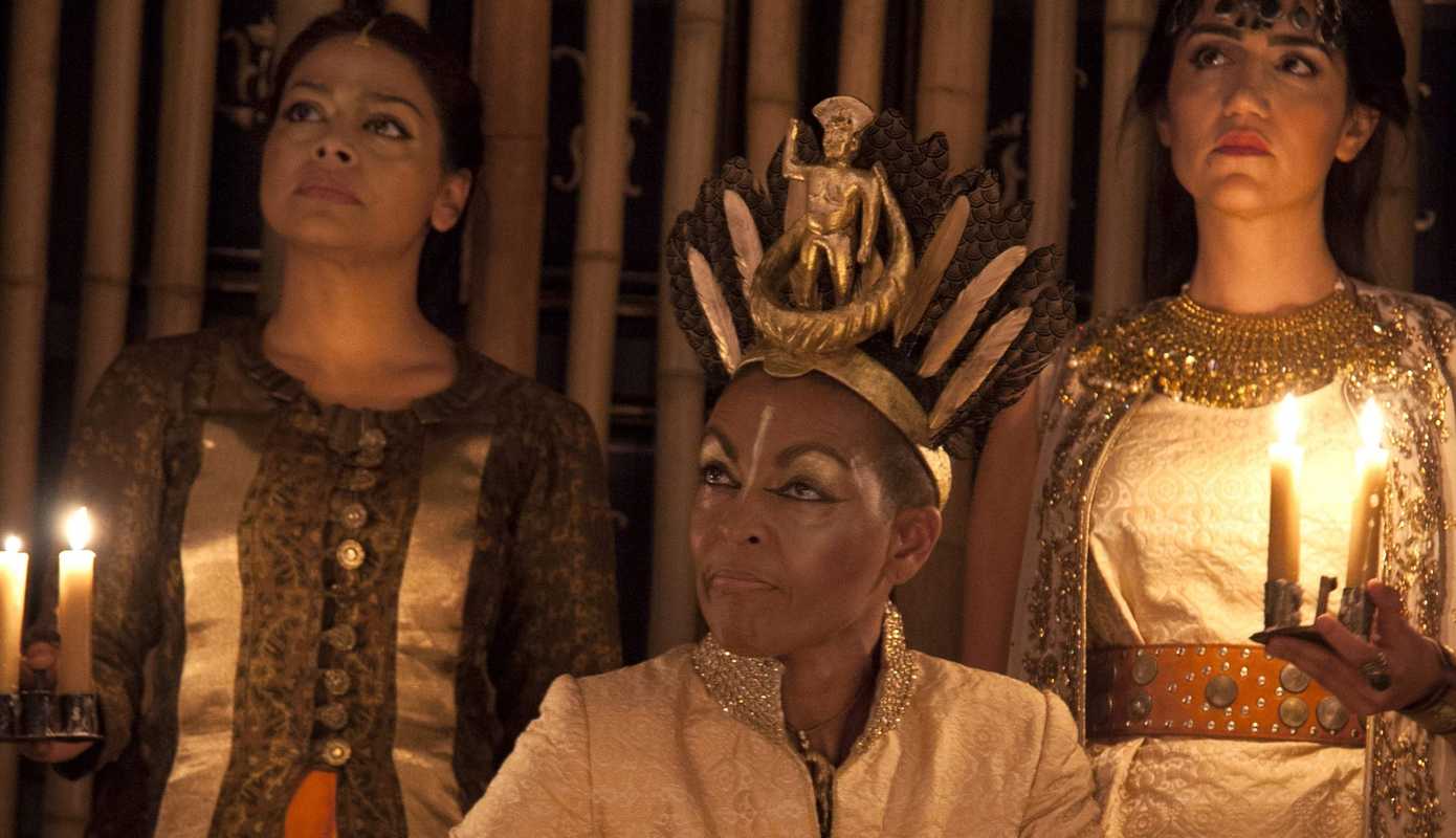 This production gives audiences the chance to imagine a world where the colonisation and subjugation of black and brown lands and humans isn’t inherent. For that reason alone, it is necessary. It is powerful to imagine a Britain ruled by black women, a Britain where queer relationships, unmarred by colonial laws, are an unspoken norm, a Britain where the regalia and architecture of pre-colonial communities of colour make up the nation’s visual identity. It is thrilling to see a different paradigm made possible, even if just on a stage. But what is thrilling to me can clearly be threatening to others.